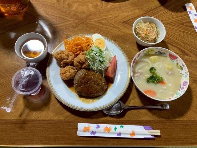 宿に帰って夕ご飯です😊