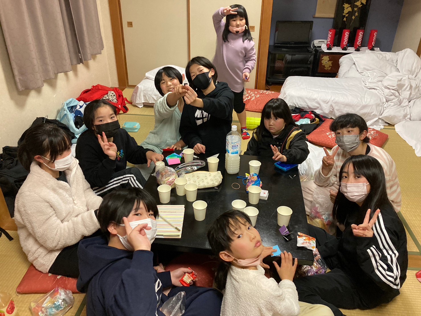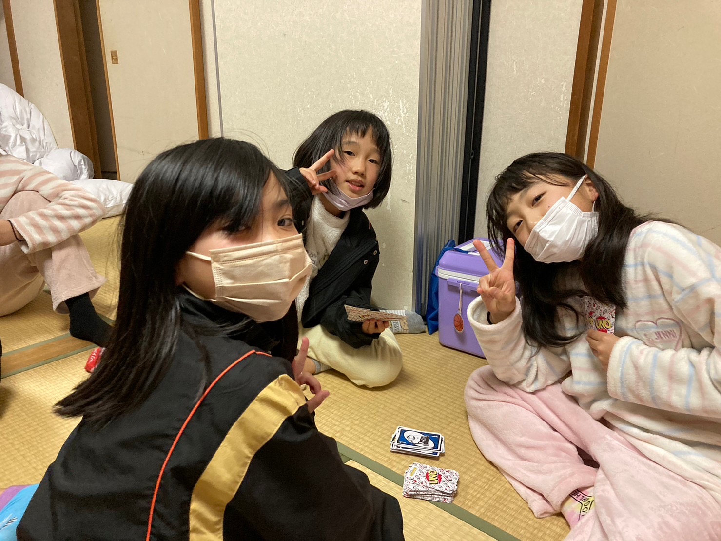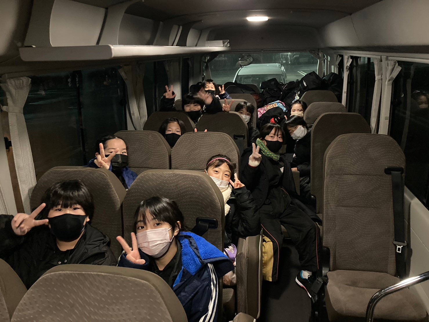 母達はバスの中で“寝ていいよー!“ “試合で眠くなるよ“など声をかけますが、なかなか寝やしない😂大丈夫かなぁ〜